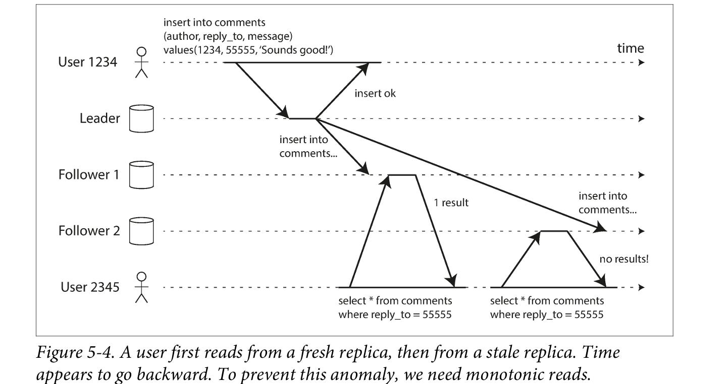 In applications with user-facing data, monotonic reads prevent confusing scenarios like: